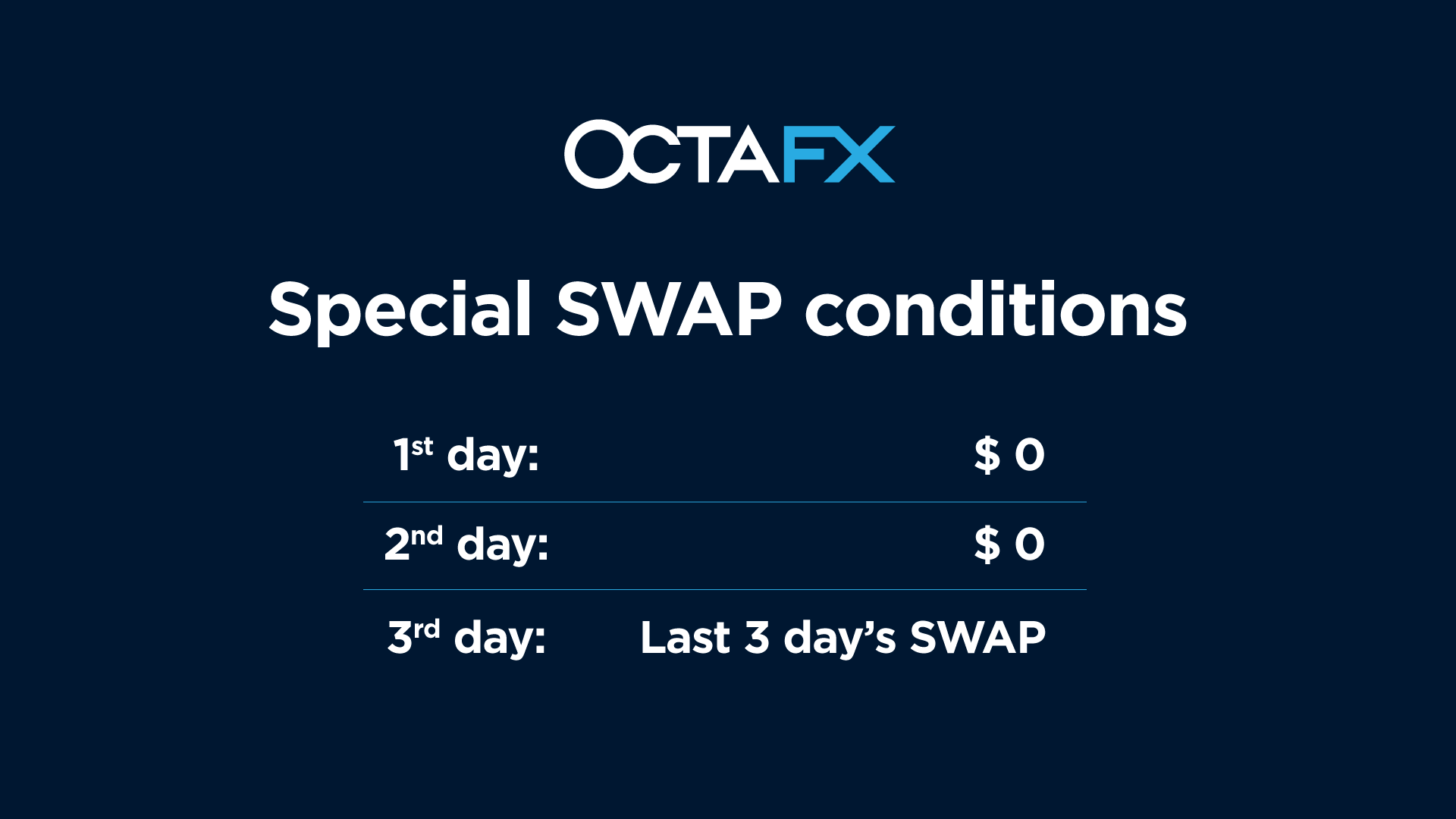 If you trade with OctaFX, you can set a tariff where swaps are only charged on a three-day basis.You won’t pay any commission if you close your deals within three days.In this way, OctaFX allows you to hold deals open overnight without a swap.